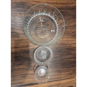 ARCOROC FRANCE CLEAR STARBURST DIAMOND PATTERN SERVING BOWL Vtg Set Of 3 MCM