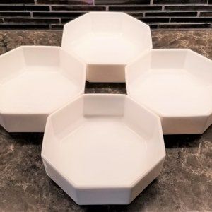 ARCOROC FRANCE MILK GLASS 1980s SET OF (4) WHITE OCTAGON SOUP SALAD BOWL BOWLS