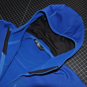 The Arc'teryx Fortrez Hoody is a fleece zip up for wearing on its own or as a layer while climbing. The Polartec® Power Stretch® with Hardface® technology fabric stretches to allow for natural movement while providing warmth. Pull on the ScubaHood™ for under-the-helmet head warmth and then pull on the integrated Phasic™ AR neck gaiter to totally warm your face and nose.