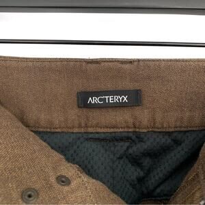 Arc'teryx Reia Trim Fit Pants in a medium brown. Straight leg, trim slim fit, zipper closure and snap button closure, gusset. Not stretchy, front and back slit pockets, molded knee. Great condition!