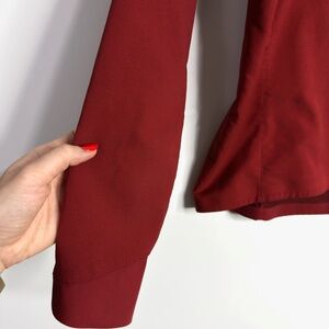 - Keywords: full zip, no hood, zippered pockets, lightweight, windbreaker, red, gorpcore, athletic