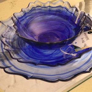 The Art of Tabletop by Ardacam Cobalt Blue Swirl Scalloped Glass Salad Plates