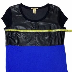 Arden B Color Block Blue Black Faux Leather Blouse Size Large