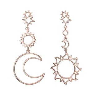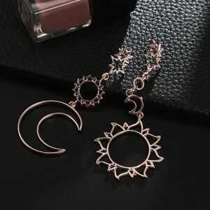 Elegant gold earrings featuring a celestial design. Perfect for adding a touch of sophistication to any outfit.
