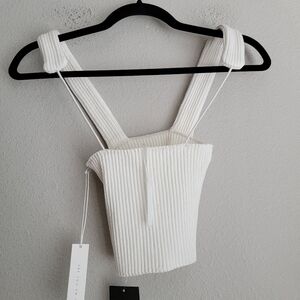 Casually channel '90s Angelina in our perfectly cropped and fitted tank. It's all about the chunky, pillowy straps that segue to tiny elastic cord in the back. Ribbed, textured cotton
