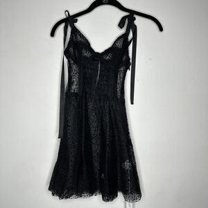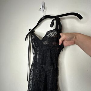 Elegant black lace pajama set. Features delicate straps and intricate lace design. Perfect for a stylish night in.
