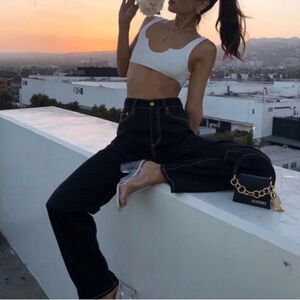Archived and no longer available! Brand new! High rise boyfriend style jeans with bright contrasting stitching from Are you am I.