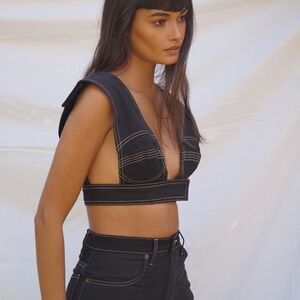 Crop Jean top with bright contrasting stitching from Are you am I.