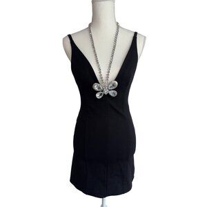 AREA Butterfly Mini Dress in Black Small New Womens Crystal Necklace