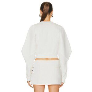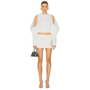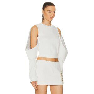 AREA Crystal Embellished Cold Shoulder Sweatshirt in Off White Medium New Womens