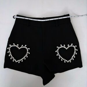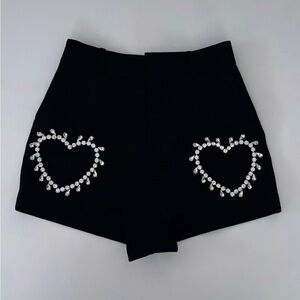 AREA Crystal Heart Cutout Short in Black Sz 0 XS