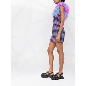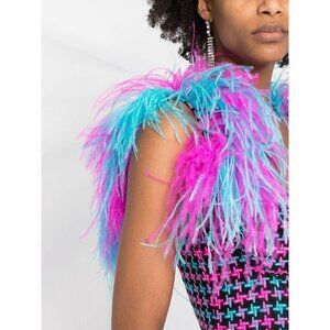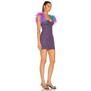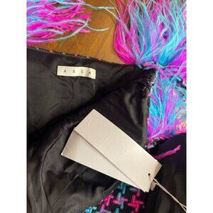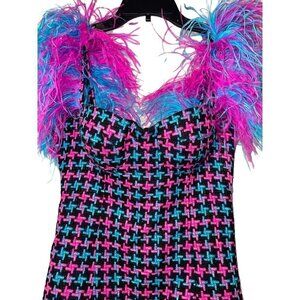 AREA Feather Strap Mini Dress in Fuchsia & Aqua 2 New womens Tweed Cocktail