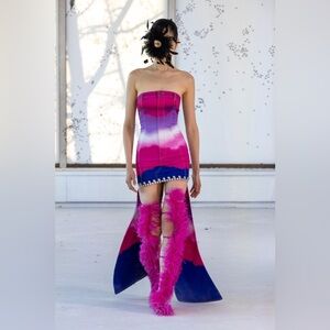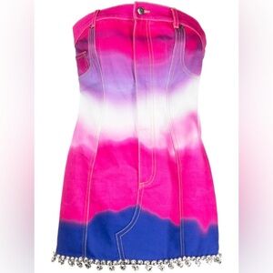 AREA Ombre Denim Strapless Mini Dress in Pink Spring, Size 2, NWT