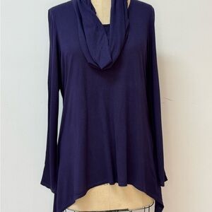 Elegant long sleeve top by AREA. Features a draped neckline. Perfect for any occasion.