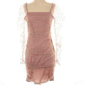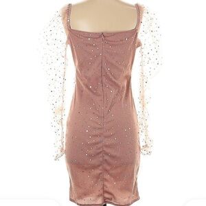 AREA STARS Stardust Pink Y2K Barbie Sheer Ruched Long Sleeve Mini Dress M