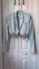 AREA Scalloped Embellished Cropped Denim Jacket in Pale Blue, Size 4, NWT