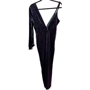 NWT AREA Stars Bianca Glitter Dress, Size Small, Black/ Multicolored Glitter. This Elegant Dress has a 7.25" Zipper in the back and an adjustable strap on the cold shoulder on the right side. Please see photos for Material and Care Information.