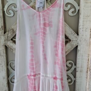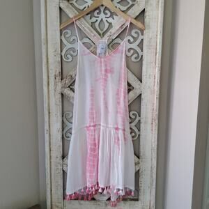 Grab this pink tie dye size large Lia tassel a-line, shift mini dress with adjustable racerback straps now.