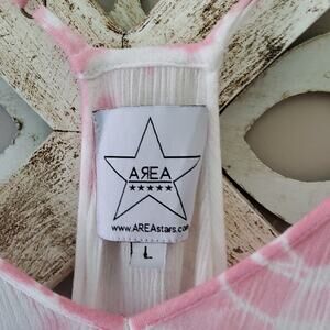 Pink tie dye Lia tassel mini dress with racerback adjustable straps by AREA Stars in a size large.