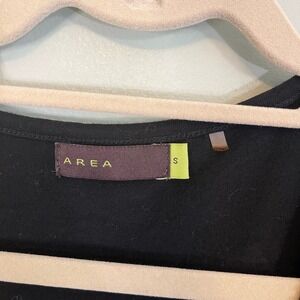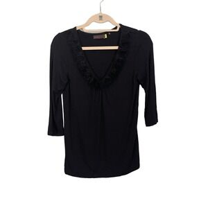 AREA Top Womens S Ruffled Flower Detail V Neck 3/4 Sleeve Stretch Blouse Black