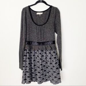 A’REVE Grey Ruffle Knit Bohemian Sweater Dress Medium Career Casual Dressy