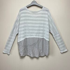 A'REVE Sweater Mixed Media Open Knit Polka Dot Gray Monochromatic Size M