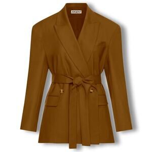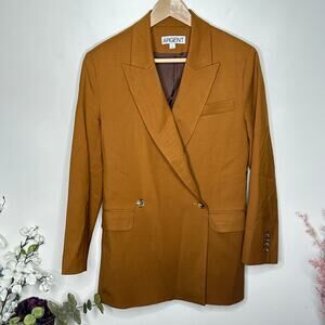 ARGENT Belted Double Breasted Blazer in Seasonless Wool Camel Tan Sz 0 {3B46}