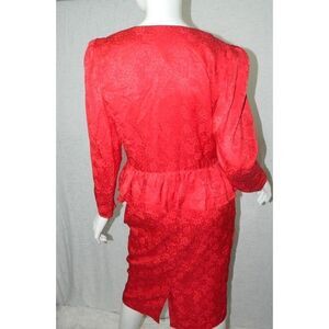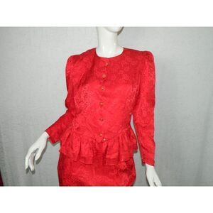 ARGENTI Suit Top Skirt Set Vintage Red 100% Silk Peplum Ruffle Size 8 Pettie
