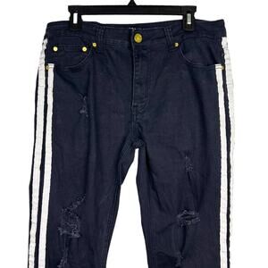 ARGONAUT NATION Men’s Distressed Black Jeans Tuxedo Stripes 36x32