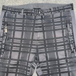 Gray & Black Plaid with Gray Tuxedo stripes down the side of the legs