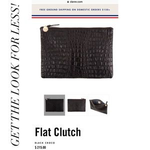 This faux crocodile embossed clutch features gold detailing and an oversized cut. It is über chic and will make any outfit look pulled together in an instant. Can be used alone for happy hour with the ladies and/or as a luxe toiletry bag for your tote! Vegan Leather. Imported. Measurements: 8 1/4" W x 11 3/4" L
