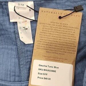 ARIA Handmade Tunic Top Gaucha blue Womens NWT S/M