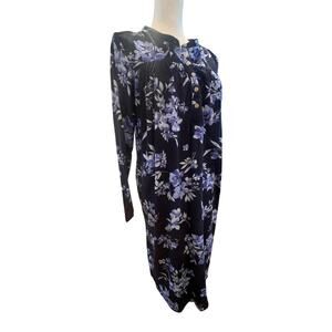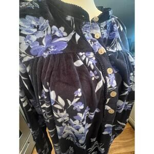 ARIA WARM FUZZY BLUE ROSE FLORAL 3/4 BUTTON NECK NIGHTGOWN WOMENS MEDIUM