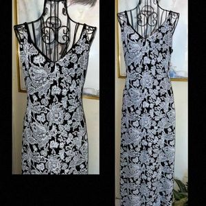 ARIANNA BY RACHEL KAYE SILVER/BLACK FLORAL LACE FULL LENGTH DRESS~STRETCH~10
