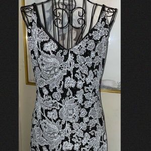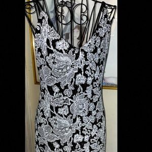 VINTAGE SILVER OVER BLACK STRETCH LACE DRESS
