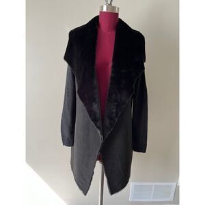 ARIANNA by Howards Black Knit Coat With Faux Fur Wide Collar Women's Sz L/XL