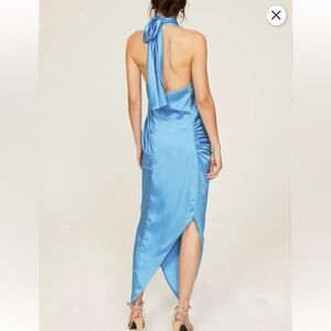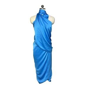 ARIAS New York Blue Satin Asymmetrical Draped Midi Cocktail Dress | Size 4