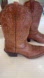 ARIAT Brown Western Scalloped Boots Beige Stitching Square Toe Size 71/2B