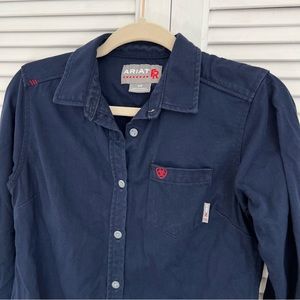 Ariat flame resistant womens work shirt. Button up with pockets. Navy blue color. Lightly used. Size small. I have other FR items if you would like to order a bundle.