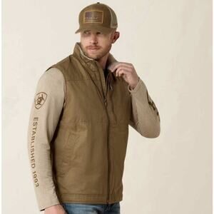 ARIAT Grizzly Canvas Insulated Vest Men Large Cub Brown Cowboy 10028416 EUC