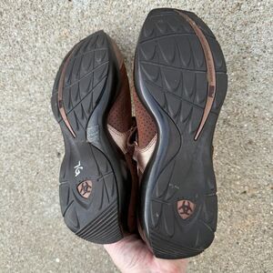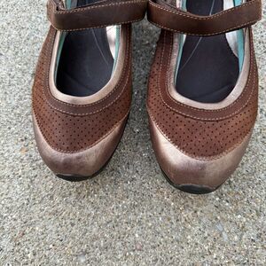 ARIAT Mary Jane Shoes Womens Size 9.5 Brown Metallic Leather Strap Perforated