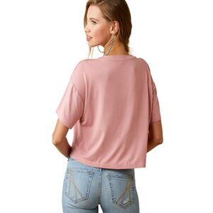 ARIAT Pink Buffalo Rising Boxy Arrowhead Graphic Print Oversized T-Shirt Size XS