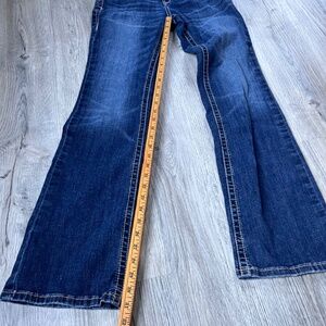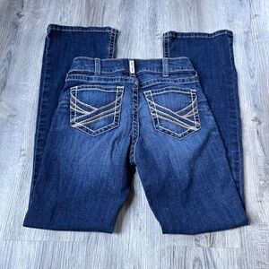 Original purchase price: $90 USD Ariat's #1 jean. Built to keep up wherever you go, this bootcut classic doesn't skimp on the details. From the no-gap, won't sag, perfect rise fit to the iconic stitching on the pockets, it's rodeo- and concert-ready the moment you slip on your boots. Waistband that won't gap A seat that won't sag Slim through hip and thigh Perfect rise sits just below the waist Boot cut 5-pocket jean styling "Missouri" dark distressed wash Stretch denim.