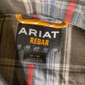 Experience comfort and style with the ARIAT REBAR Men's Plaid Shirt. Featuring a classic blue and gray plaid design, this shirt is perfect for any casual occasion. Made with quality materials, it ensures durability and a great fit.