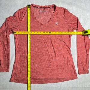 ARIAT TEK Long Sleeve T-Shirt Women Large Red Heather V-Neck Lightweight Cooling