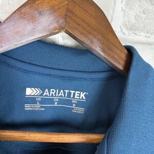 ARIAT TEK Western Performance Navy Blue Collared Polo Shirt Mens LARGE Stretch