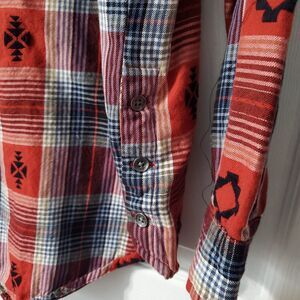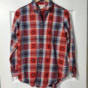 STYLE: Long Sleeve Plaid button up women's shirt, red and blue southwestern plaid pattern