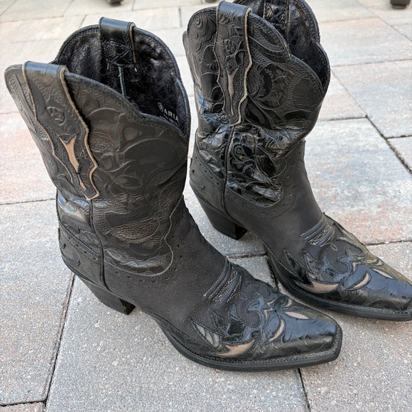 Reposhing this item I purchased from @shawnevans962. Pictures added show current condition. Still lots of life left on these boots. I decided I don't need 4 pairs of black cowboy boots so, here you go. Great deal for a very comfortable boot.