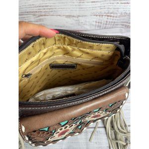 ARIAT Women's Monroe Floral Pierced Lacing Brown Crossbody Purse Bag NWT