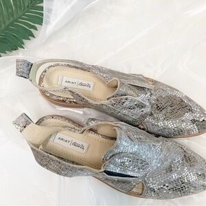 Rush Slingback Flat Shoes In Metallic Snakeskin!